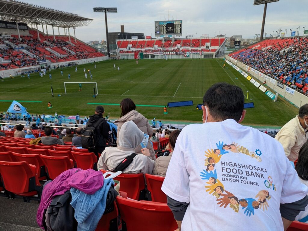 令和7年11月24日に花園スタジアムで行われましたFC大阪×高知ユナイテッドのJ3リーグの観戦に、東大阪市フードバンク推進連絡会の活動にて参加してきました。東大阪市の子ども食堂を利用のお子さんに、NTTドコモさんから招待をいただき、フードバンク推進連絡会としてこのイベントに参加してきました。スタジアムで見るサッカー観戦が初めてのお子さんは大興奮で、プロの選手の体の大きさや、スピードの速さ、全てを真剣な眼差しで見ておられました。