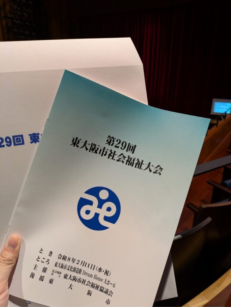 令和8年2月11日(祝)に東大阪市文化創造館大ホールにて、東大阪市社会福祉協議会主催の第29回東大阪市社会福祉大会が開催されました。この度社会福祉法人育永会すぷらうとの職員1人も地域福祉の部で感謝状をいただくことになり、当日は大会に参加させていただきました。地域福祉に貢献することが、私たち社会福祉法人の役割であり、その点で改めて感謝状をいただくことになるのは、大変恐縮ではありましたが、これからの励みにもなると考え、感謝状をありがたくちょうだいすることといたしました。まだまだ至らぬところばかりですが、引き続き地域で必要とされる法人でありつづけれるよう、日々精進してまいります。
