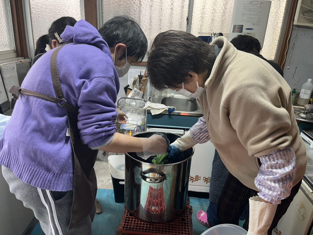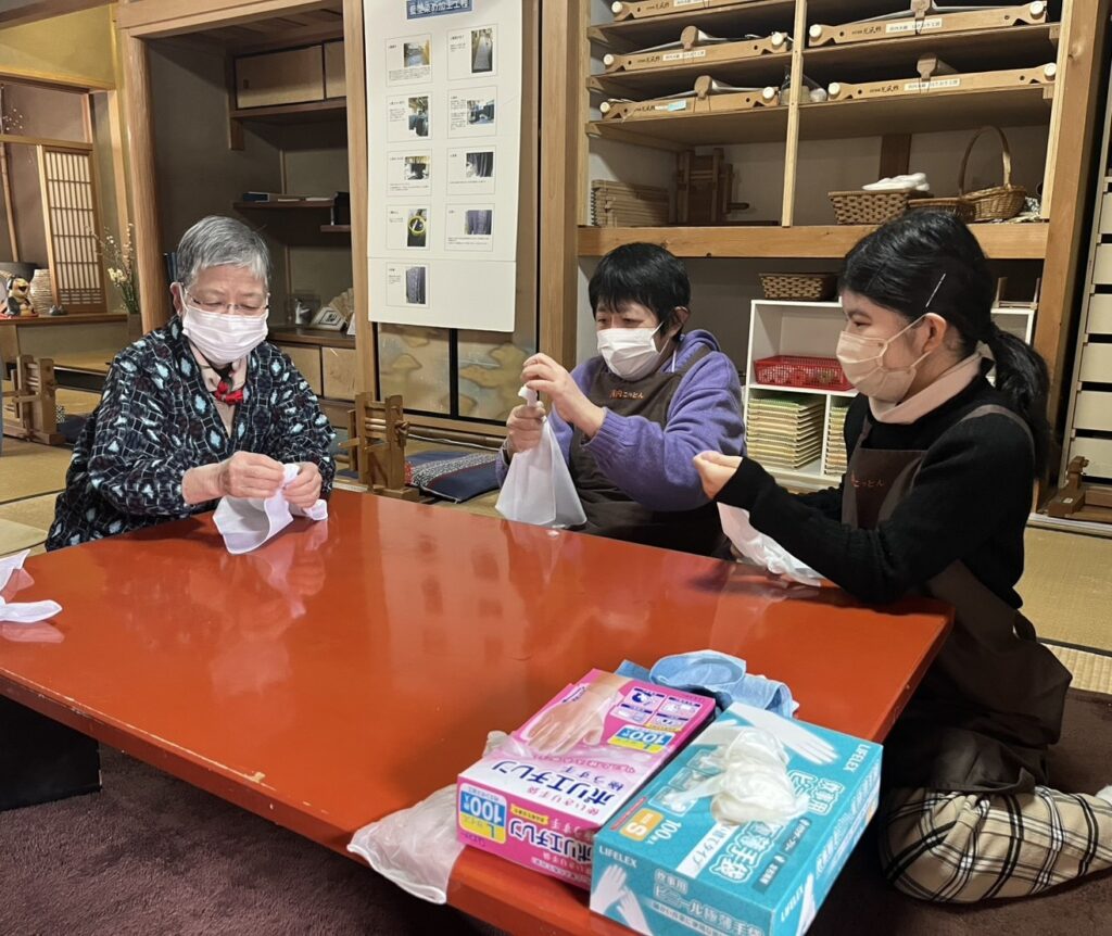 はたおり工房では、ハンカチの染物と