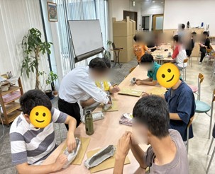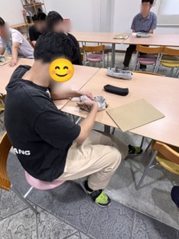 タブレットやパソコンで新聞紙食器の作り方を確認し、