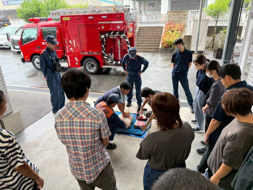 水消火器を使用するのも、救命救急の実践を見るのも、