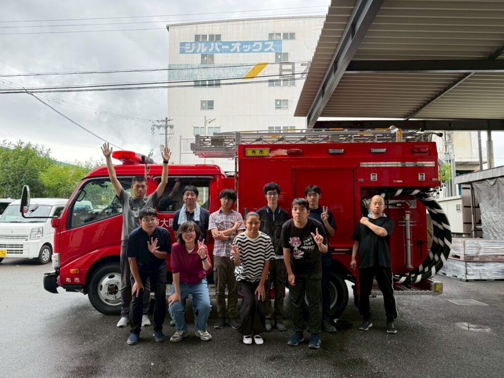 消防士の方に教えてもらいながら、